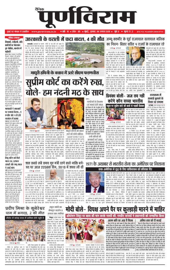 Purnviram Mumbai Edition 06 August 2025 Purnviram Mumbai Edition 06 August 2025 Go To Page: Page 1Page 2Page 3Page 4Page 5Page 6Page 7Page 8 × Purnviram Mumbai Edition 06 August 2025 12345678 << First << 1 2 3 >> Last >> 12345678