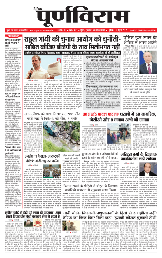 Purnviram Mumbai Edition 08 August 2025 Purnviram Mumbai Edition 08 August 2025 Go To Page: Page 1Page 2Page 3Page 4Page 5Page 6Page 7Page 8 × Purnviram Mumbai Edition 08 August 2025 12345678 << First << 1 2 3 >> Last >> 12345678