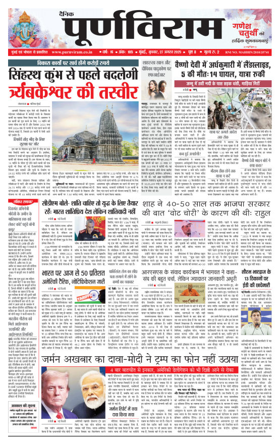 Purnviram Mumbai Edition 27 August 2025 Purnviram Mumbai Edition 27 August 2025 Go To Page: Page 1Page 2Page 3Page 4Page 5Page 6Page 7Page 8 × Purnviram Mumbai Edition 27 August 2025 12345678 << First << 1 2 3 >> Last >> 12345678