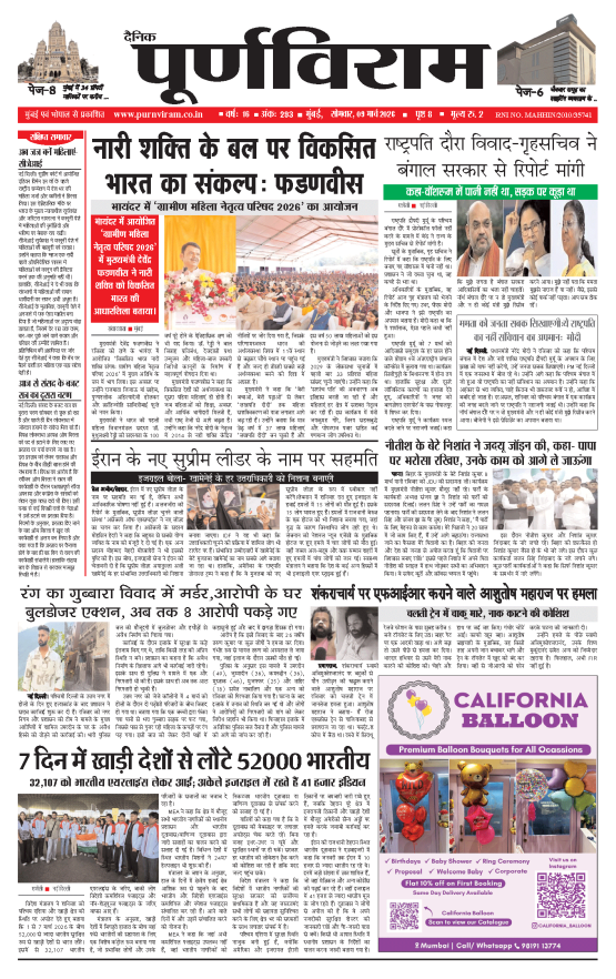 Purnviram Mumbai Edition 09 March 2026 Purnviram Mumbai Edition 09 March 2026 Go To Page: Page 1Page 2Page 3Page 4Page 5Page 6Page 7Page 8 × Purnviram Mumbai Edition 09 March 2026 12345678 << First << 1 2 3 >> Last >> 12345678